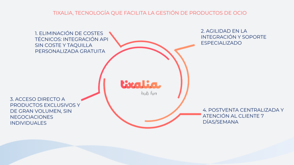 Tixalia, como empresa tecnológica especializada en la distribución B2B de ocio y experiencias, ha desarrollado un modelo, que facilita a los distribuidores el acceso a cientos de productos en España y Europa sin costes añadidos y con una gestión centralizada.